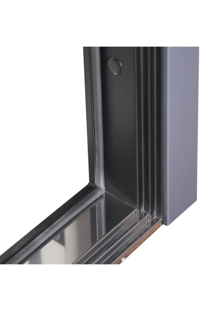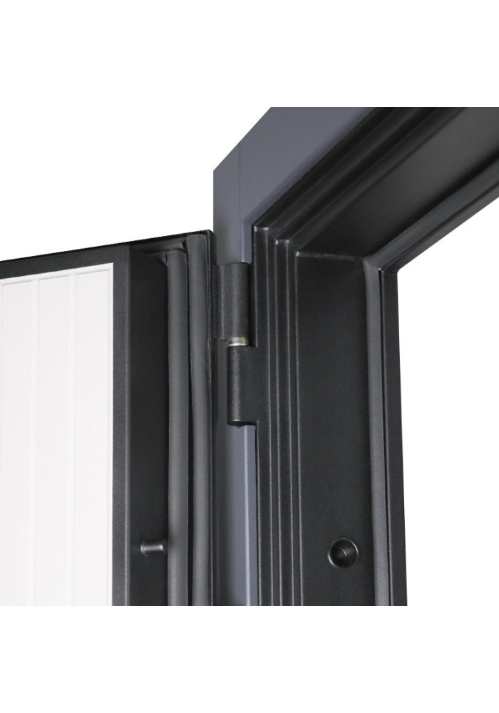 - Наружный лист металла: Лист металла 1,5 мм. Экошпонированная панель МДФ 10 мм. Линейная фрезеровка. Цвет "графит". Наличник МДФ гладкий 80 мм. Цвет "графит".